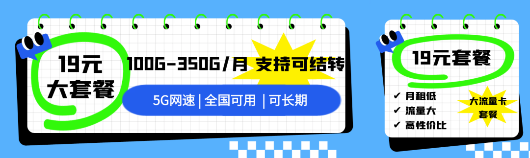 最近不少卡友问有没有19元就能搞定大流量的手机卡?那我就汇总一下给大家分析分析!我们今天测评的这些大流量套餐,基本都是含上百GB流量+通话分钟数,性价比确实高出不少,可以看哪款适合自己,再进行选择!在此请放心,所有推荐的套餐都是正规官方卡,免费申请入口在下方~