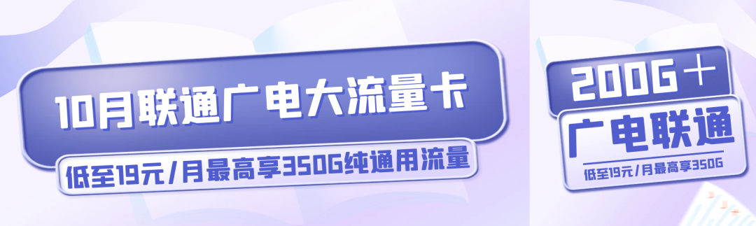 如果你问现在还有什么大流量卡值得推荐,那我一定会推荐你广电联通的这4款目前最火爆的大流量卡套餐!低低至19元/月就能拥有350G的纯通用流量,而且都是5F网速,不限速,还送通话分钟数,完全可以充当主卡来使用,更有优势的一点就是,套餐是长期的,解决长期换卡的烦恼!